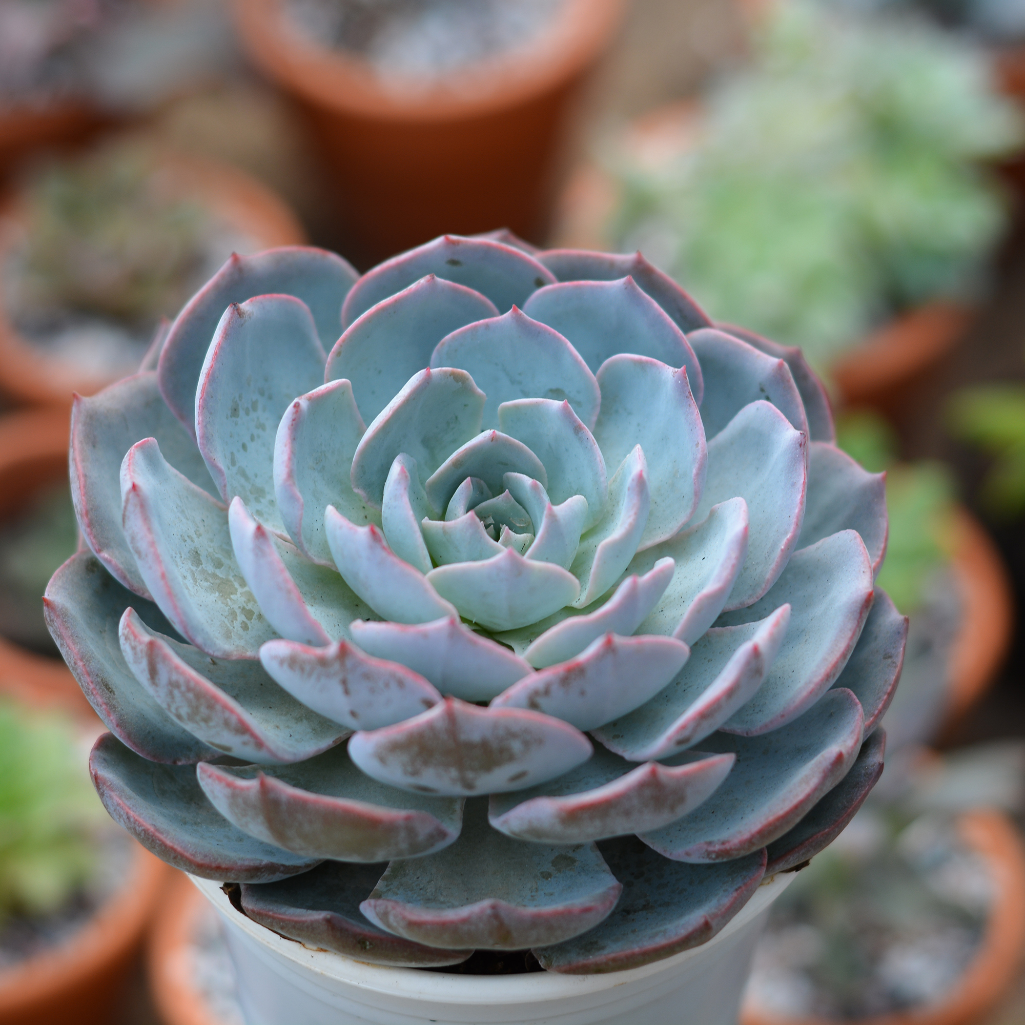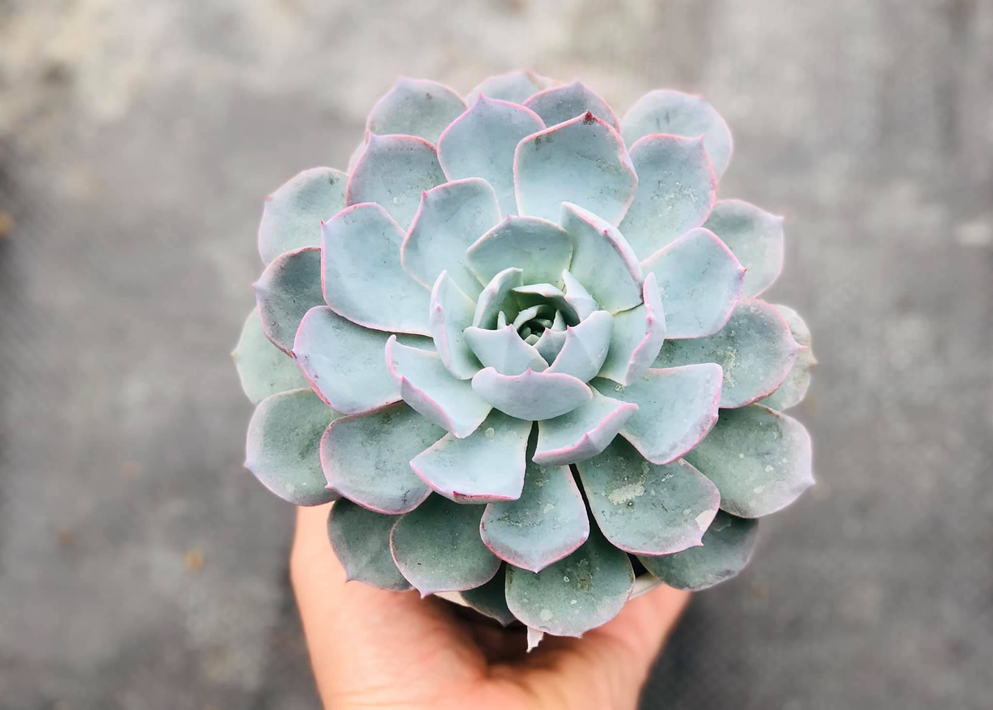 - Đây là một loại sen đá mọng nước đáng yêu với lá màu xanh xám ở giữa và chuyển dần sang màu hồng ra ngoài mép lá. Lớp phủ sáp bên ngoài mang lại cho cây một vẻ ngoài thanh tú, mềm mại.